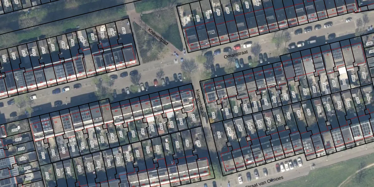 Het perceel waarop Omanstraat 35 staat heeft een oppervlakte van 174 m². Dit is een middelgroot perceel. De perceeloppervlakte wordt geregistreerd door het Kadaster. Gedetailleerde informatie over de maten van dit perceel kunt u vinden in het rapport Kadastrale kaart met maatvoering van Omanstraat 35.