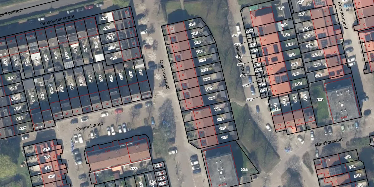 Het perceel waarop Ooievaarstraat 12 staat heeft een oppervlakte van 135 m². Dit is een middelgroot perceel. De perceeloppervlakte wordt geregistreerd door het Kadaster. Gedetailleerde informatie over de maten van dit perceel kunt u vinden in het rapport Kadastrale kaart met maatvoering van Ooievaarstraat 12.