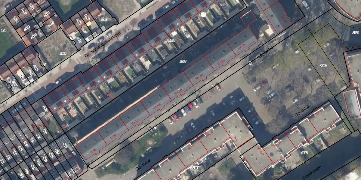 Oostblok 130 is gelegen op kadastraal perceel DEL00P2069. Deze kadastrale aanduiding is uniek en wordt gebruikt door het Kadaster om eigendomsrechten en andere zakelijke rechten vast te leggen. Het perceel maakt onderdeel uit van de kadastrale gemeente Delft.