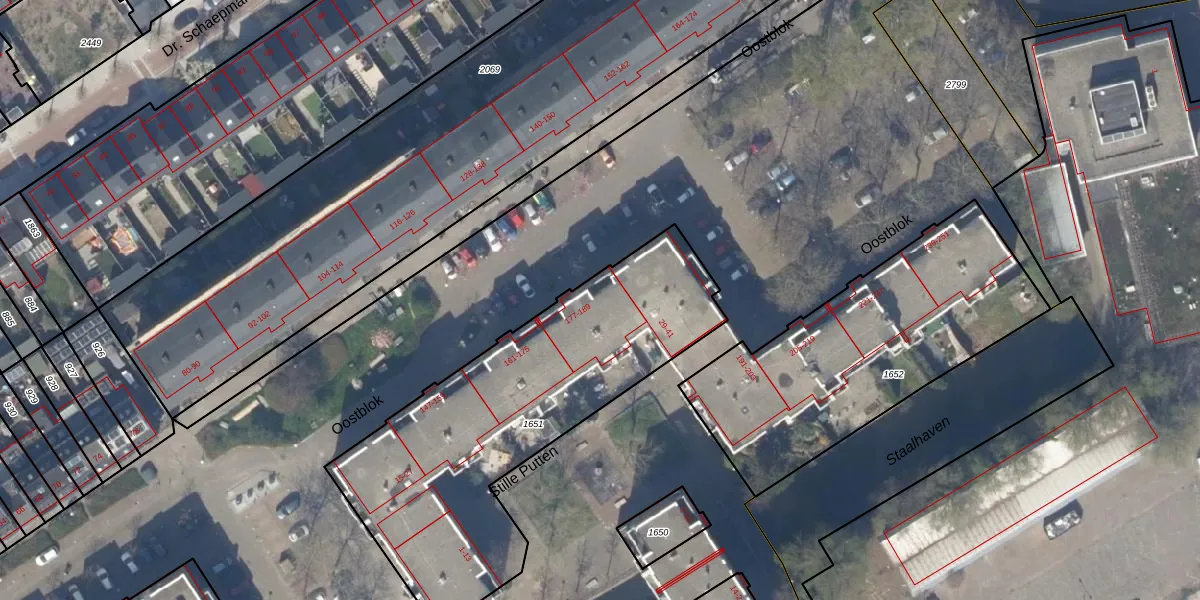 Oostblok 189 is gelegen op kadastraal perceel DEL00P1651. Deze kadastrale aanduiding is uniek en wordt gebruikt door het Kadaster om eigendomsrechten en andere zakelijke rechten vast te leggen. Het perceel maakt onderdeel uit van de kadastrale gemeente Delft.
