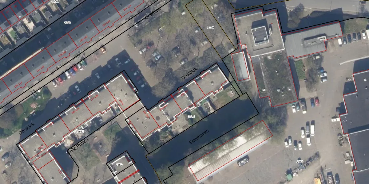 Oostblok 227 is gelegen op kadastraal perceel DEL00P1652. Deze kadastrale aanduiding is uniek en wordt gebruikt door het Kadaster om eigendomsrechten en andere zakelijke rechten vast te leggen. Het perceel maakt onderdeel uit van de kadastrale gemeente Delft.