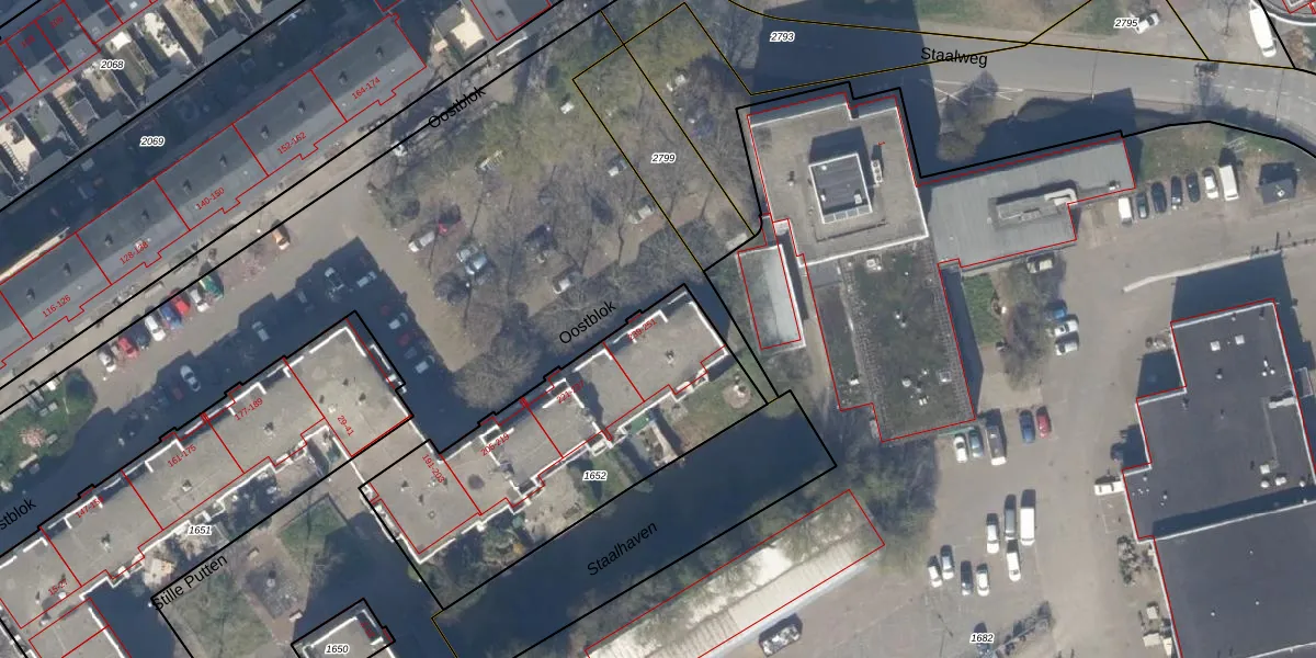 Oostblok 241 is gelegen op kadastraal perceel DEL00P1652. Deze kadastrale aanduiding is uniek en wordt gebruikt door het Kadaster om eigendomsrechten en andere zakelijke rechten vast te leggen. Het perceel maakt onderdeel uit van de kadastrale gemeente Delft.