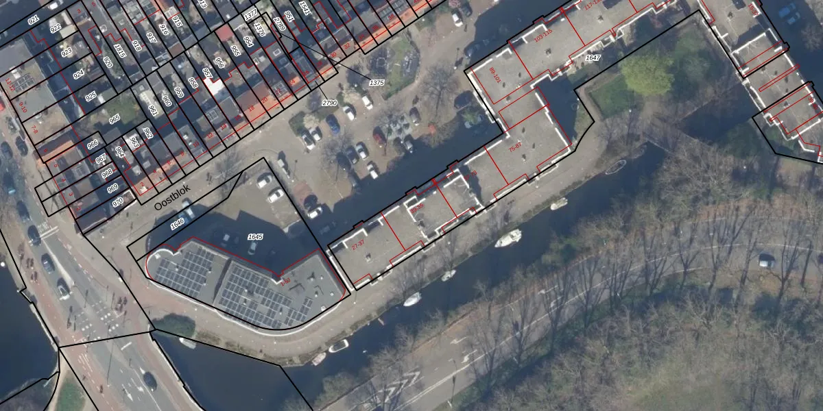 Oostblok 47 is gelegen op kadastraal perceel DEL00P1647. Deze kadastrale aanduiding is uniek en wordt gebruikt door het Kadaster om eigendomsrechten en andere zakelijke rechten vast te leggen. Het perceel maakt onderdeel uit van de kadastrale gemeente Delft.