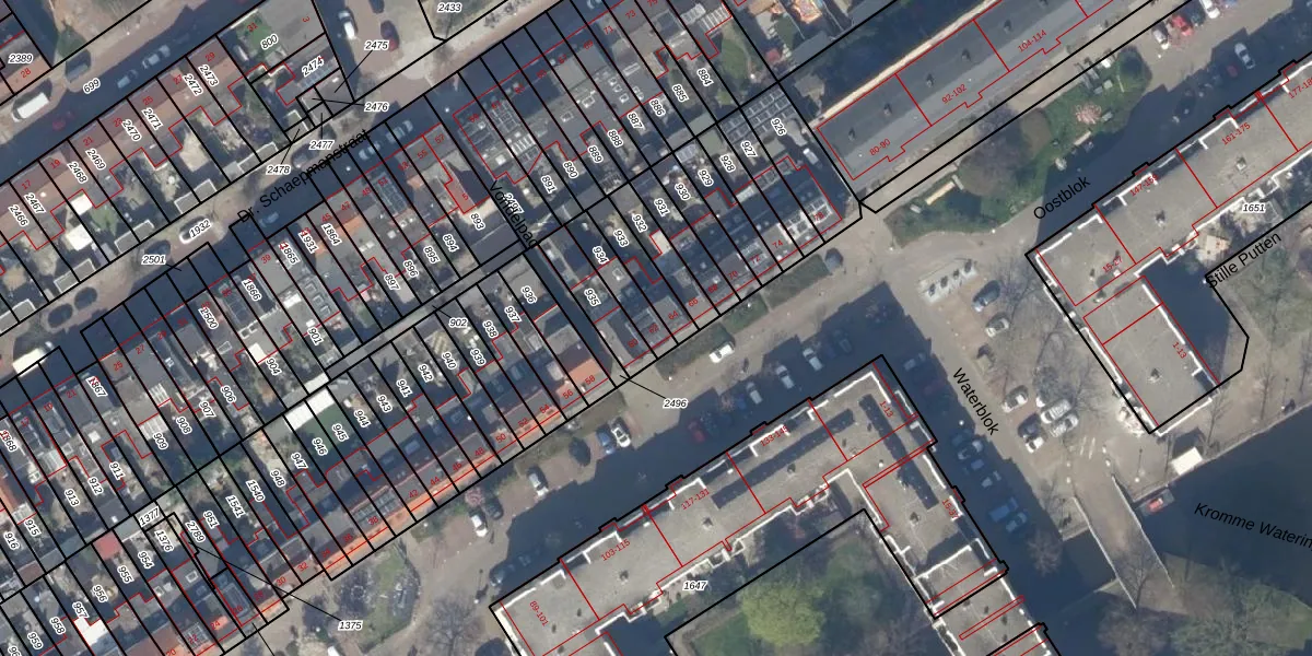 Oostblok 62 is gelegen op kadastraal perceel DEL00P934. Deze kadastrale aanduiding is uniek en wordt gebruikt door het Kadaster om eigendomsrechten en andere zakelijke rechten vast te leggen. Het perceel maakt onderdeel uit van de kadastrale gemeente Delft.