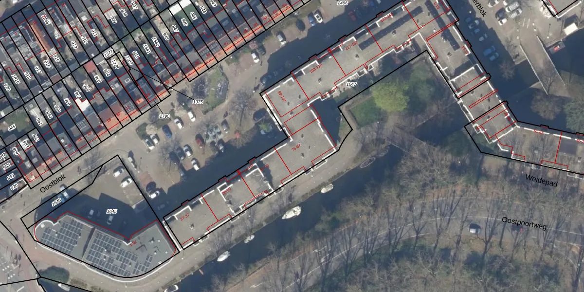 Oostblok 81 is gelegen op kadastraal perceel DEL00P1647. Deze kadastrale aanduiding is uniek en wordt gebruikt door het Kadaster om eigendomsrechten en andere zakelijke rechten vast te leggen. Het perceel maakt onderdeel uit van de kadastrale gemeente Delft.