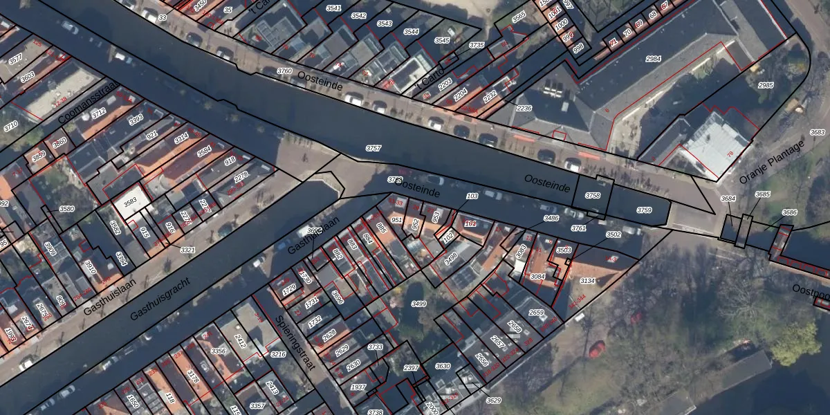 Het perceel waarop Oosteinde 29 staat heeft een oppervlakte van 40 m². Dit is een klein perceel. De perceeloppervlakte wordt geregistreerd door het Kadaster. Gedetailleerde informatie over de maten van dit perceel kunt u vinden in het rapport Kadastrale kaart met maatvoering van Oosteinde 29.