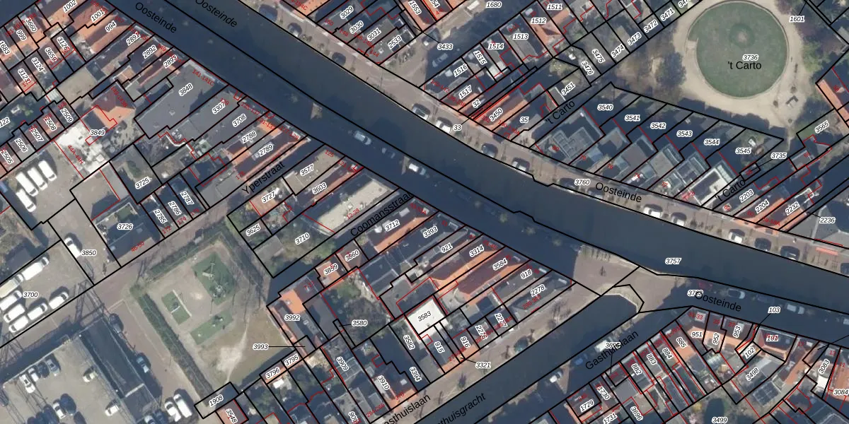 Oosteinde 53 is gelegen op kadastraal perceel DEL00D3712. Deze kadastrale aanduiding is uniek en wordt gebruikt door het Kadaster om eigendomsrechten en andere zakelijke rechten vast te leggen. Het perceel maakt onderdeel uit van de kadastrale gemeente Delft.