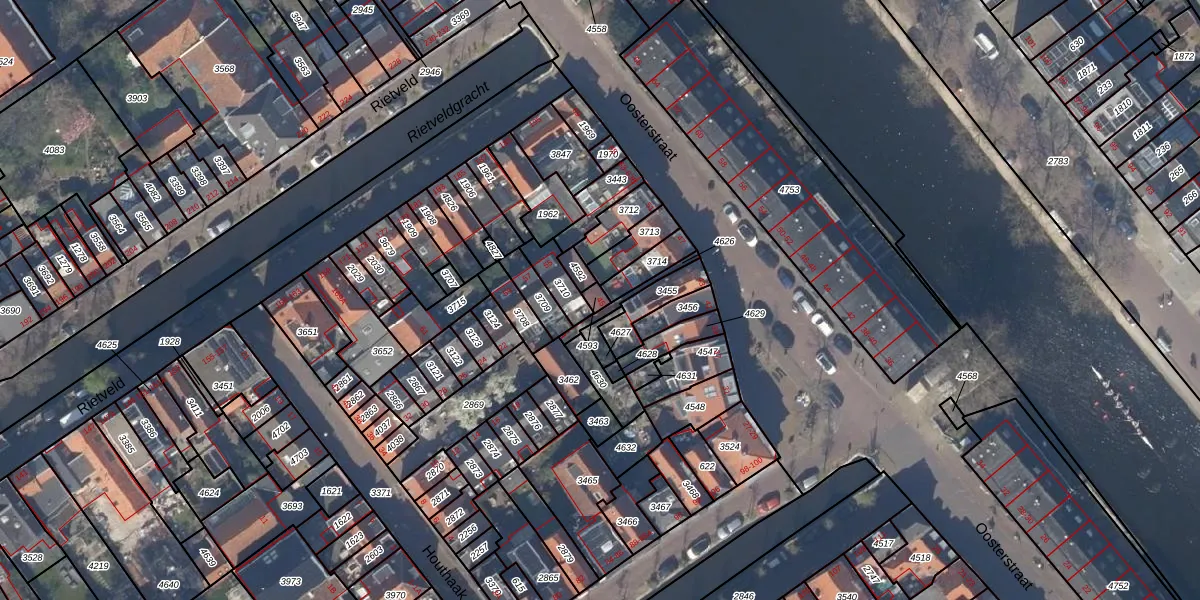 Oosterstraat 45 is gelegen op kadastraal perceel DEL00C4593. Deze kadastrale aanduiding is uniek en wordt gebruikt door het Kadaster om eigendomsrechten en andere zakelijke rechten vast te leggen. Het perceel maakt onderdeel uit van de kadastrale gemeente Delft.