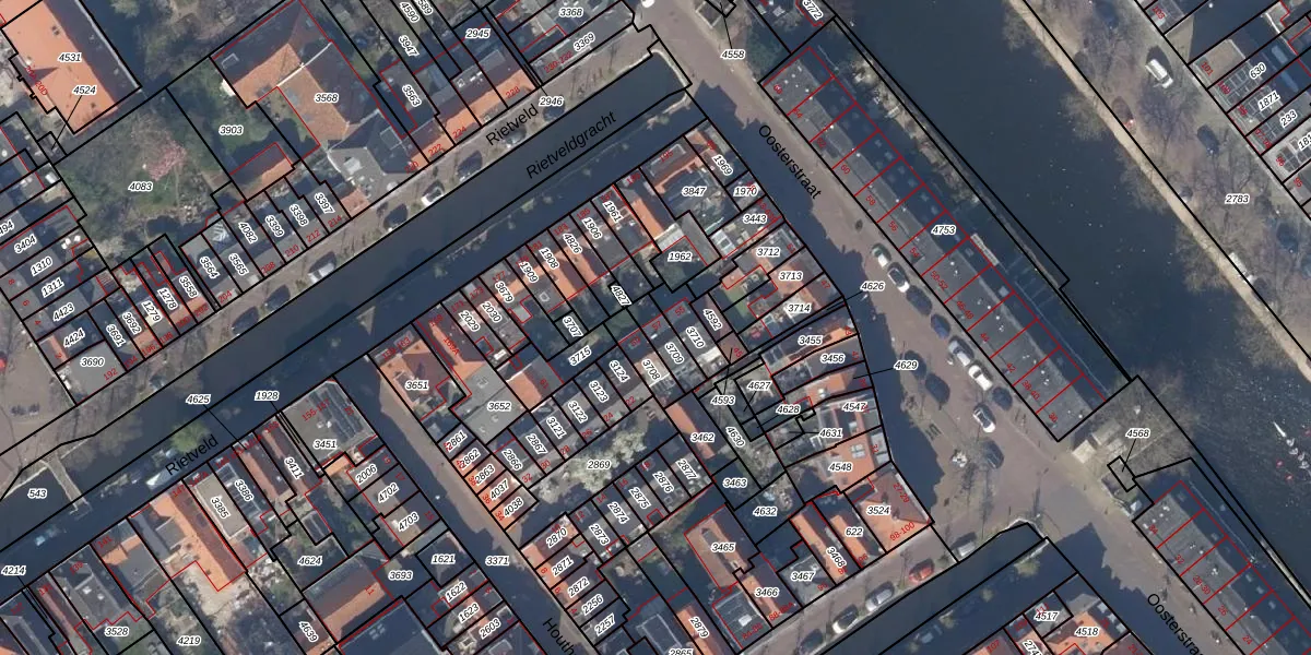 Het perceel waarop Oosterstraat 57 staat heeft een oppervlakte van 65 m². Dit is een klein perceel. De perceeloppervlakte wordt geregistreerd door het Kadaster. Gedetailleerde informatie over de maten van dit perceel kunt u vinden in het rapport Kadastrale kaart met maatvoering van Oosterstraat 57.
