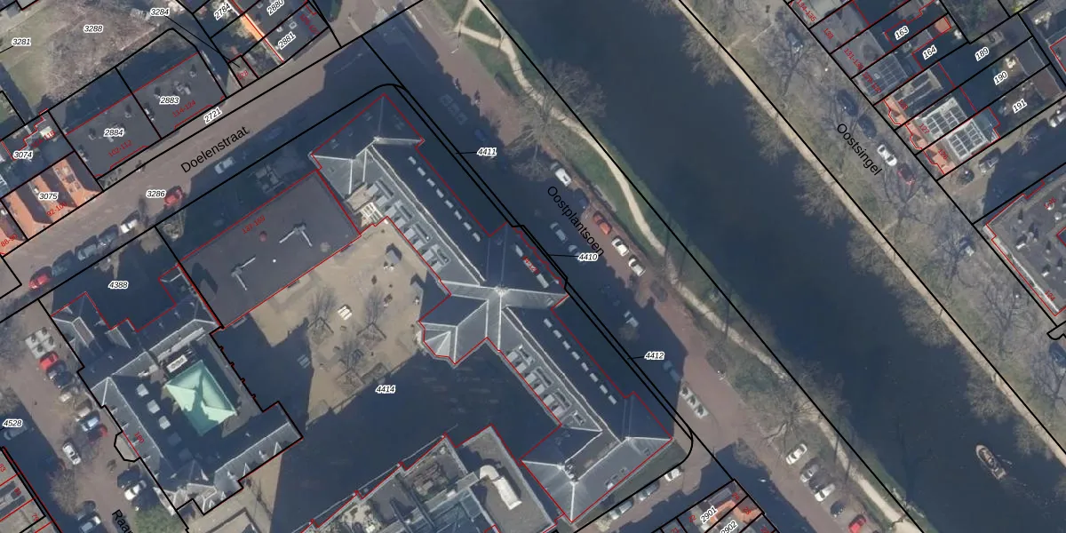 Het perceel waarop Oostplantsoen 122 staat heeft een oppervlakte van 6180 m². Dit is een zeer groot perceel. De perceeloppervlakte wordt geregistreerd door het Kadaster. Gedetailleerde informatie over de maten van dit perceel kunt u vinden in het rapport Kadastrale kaart met maatvoering van Oostplantsoen 122.