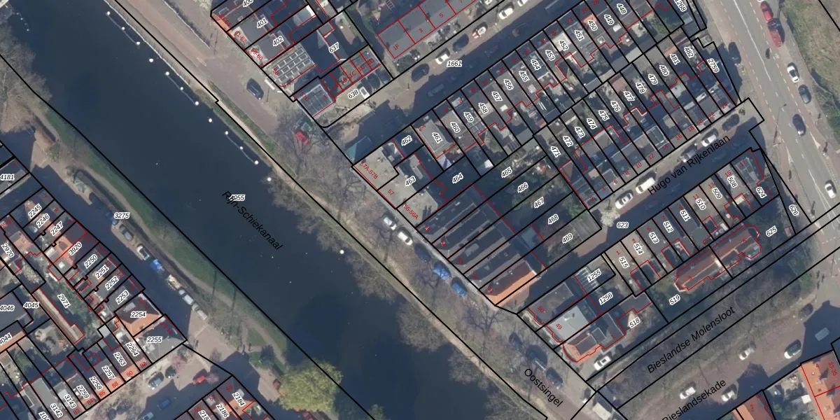 Oostsingel 56-A is gelegen op kadastraal perceel DEL00P464. Deze kadastrale aanduiding is uniek en wordt gebruikt door het Kadaster om eigendomsrechten en andere zakelijke rechten vast te leggen. Het perceel maakt onderdeel uit van de kadastrale gemeente Delft.