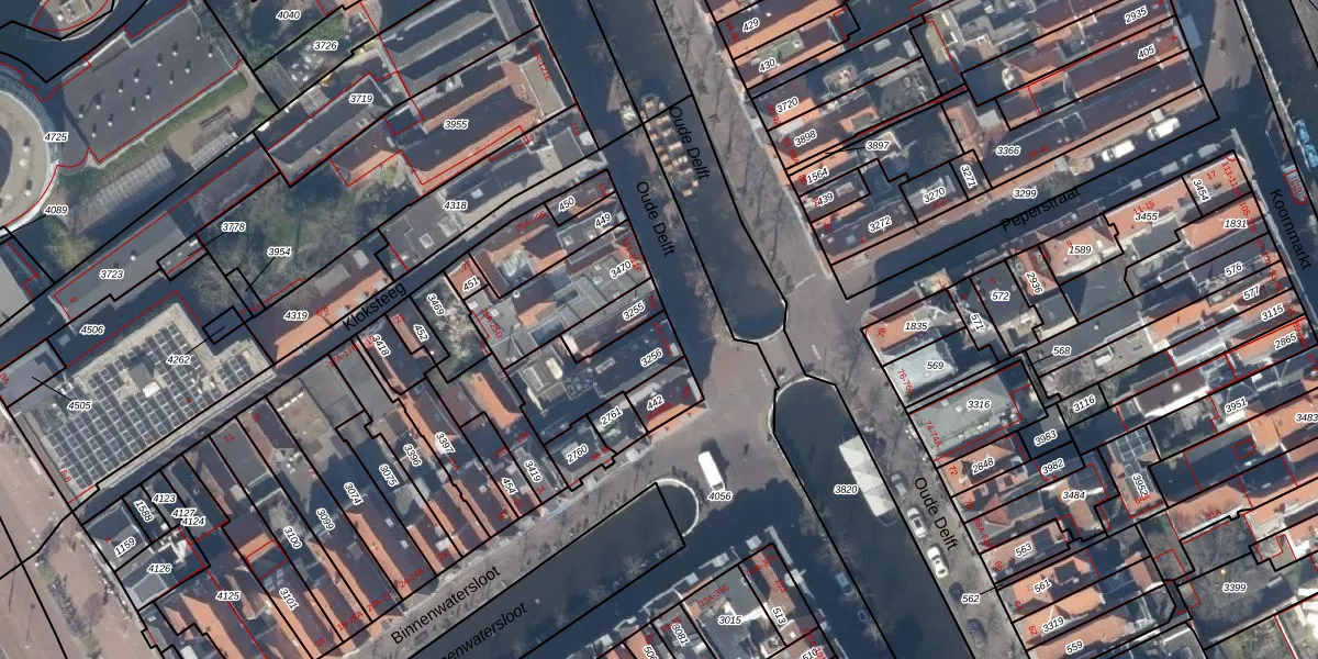 Oude Delft 107-B is gelegen op kadastraal perceel DEL00D3256. Deze kadastrale aanduiding is uniek en wordt gebruikt door het Kadaster om eigendomsrechten en andere zakelijke rechten vast te leggen. Het perceel maakt onderdeel uit van de kadastrale gemeente Delft.