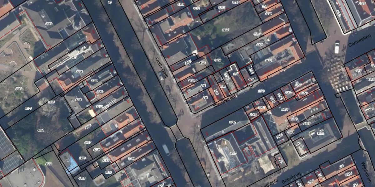 Oude Delft 120 is gelegen op kadastraal perceel DEL00C145. Deze kadastrale aanduiding is uniek en wordt gebruikt door het Kadaster om eigendomsrechten en andere zakelijke rechten vast te leggen. Het perceel maakt onderdeel uit van de kadastrale gemeente Delft.