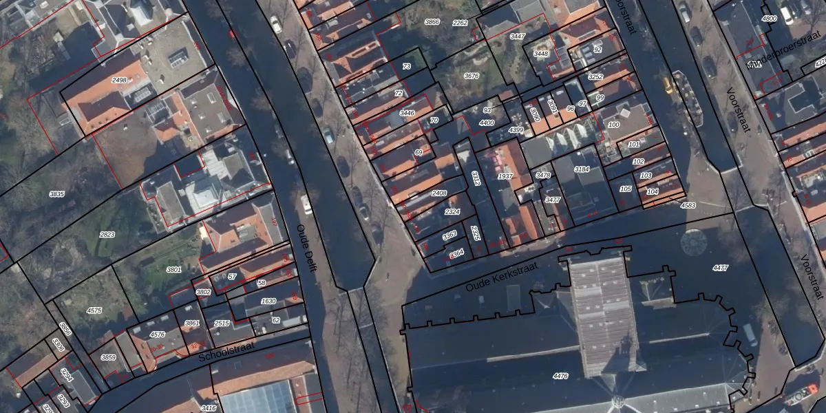 Oude Delft 150 is gelegen op kadastraal perceel DEL00C2408. Deze kadastrale aanduiding is uniek en wordt gebruikt door het Kadaster om eigendomsrechten en andere zakelijke rechten vast te leggen. Het perceel maakt onderdeel uit van de kadastrale gemeente Delft.