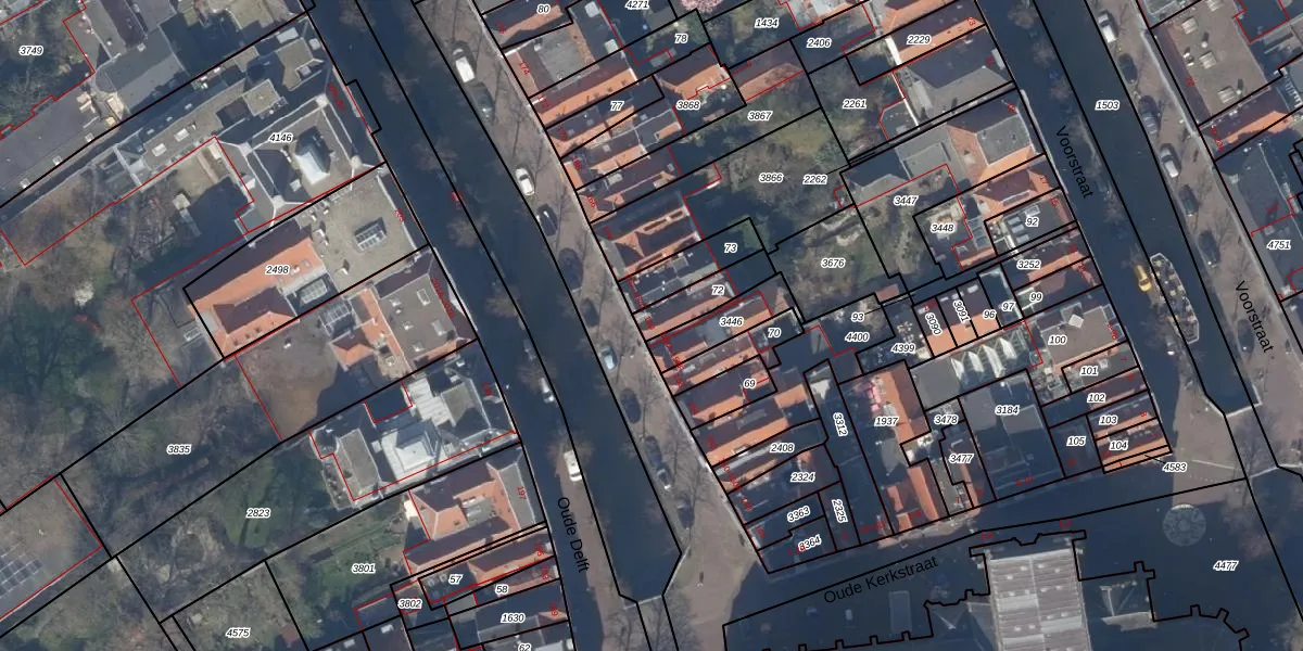 Het perceel waarop Oude Delft 160 staat heeft een oppervlakte van 104 m². Dit is een middelgroot perceel. De perceeloppervlakte wordt geregistreerd door het Kadaster. Gedetailleerde informatie over de maten van dit perceel kunt u vinden in het rapport Kadastrale kaart met maatvoering van Oude Delft 160.