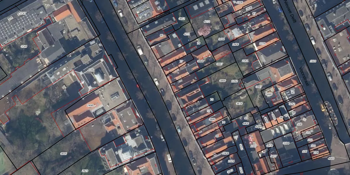 Het perceel waarop Oude Delft 166 staat heeft een oppervlakte van 278 m². Dit is een middelgroot perceel. De perceeloppervlakte wordt geregistreerd door het Kadaster. Gedetailleerde informatie over de maten van dit perceel kunt u vinden in het rapport Kadastrale kaart met maatvoering van Oude Delft 166.
