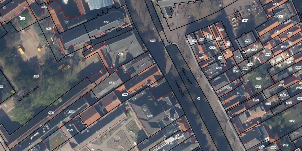 Oude Delft 169-A is gelegen op kadastraal perceel DEL00C3865. Deze kadastrale aanduiding is uniek en wordt gebruikt door het Kadaster om eigendomsrechten en andere zakelijke rechten vast te leggen. Het perceel maakt onderdeel uit van de kadastrale gemeente Delft.