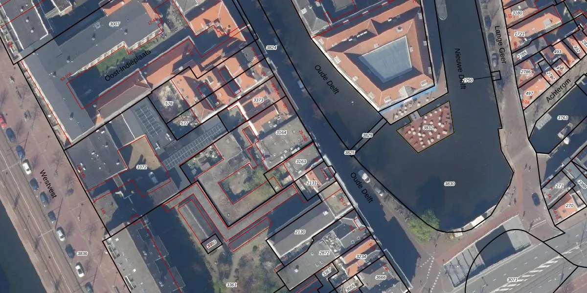 Oude Delft 25 is gelegen op kadastraal perceel DEL00E3164. Deze kadastrale aanduiding is uniek en wordt gebruikt door het Kadaster om eigendomsrechten en andere zakelijke rechten vast te leggen. Het perceel maakt onderdeel uit van de kadastrale gemeente Delft.