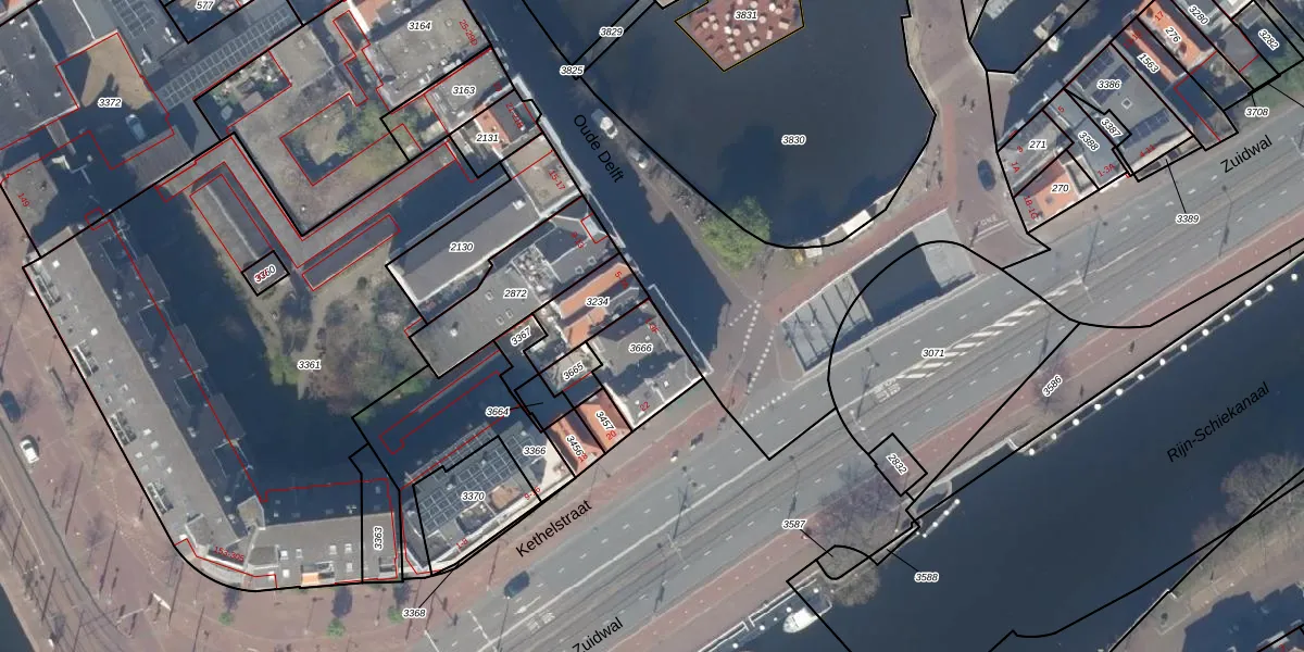 Oude Delft 3-D is gelegen op kadastraal perceel DEL00E3666. Deze kadastrale aanduiding is uniek en wordt gebruikt door het Kadaster om eigendomsrechten en andere zakelijke rechten vast te leggen. Het perceel maakt onderdeel uit van de kadastrale gemeente Delft.
