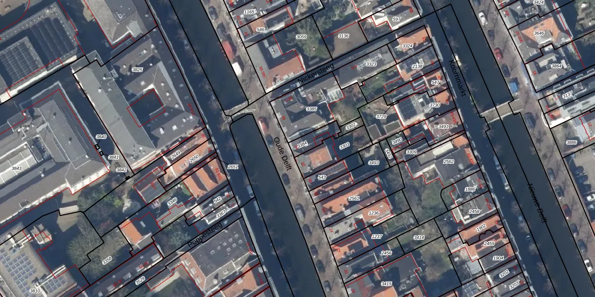 Het perceel waarop Oude Delft 34 staat heeft een oppervlakte van 79 m². Dit is een klein perceel. De perceeloppervlakte wordt geregistreerd door het Kadaster. Gedetailleerde informatie over de maten van dit perceel kunt u vinden in het rapport Kadastrale kaart met maatvoering van Oude Delft 34.