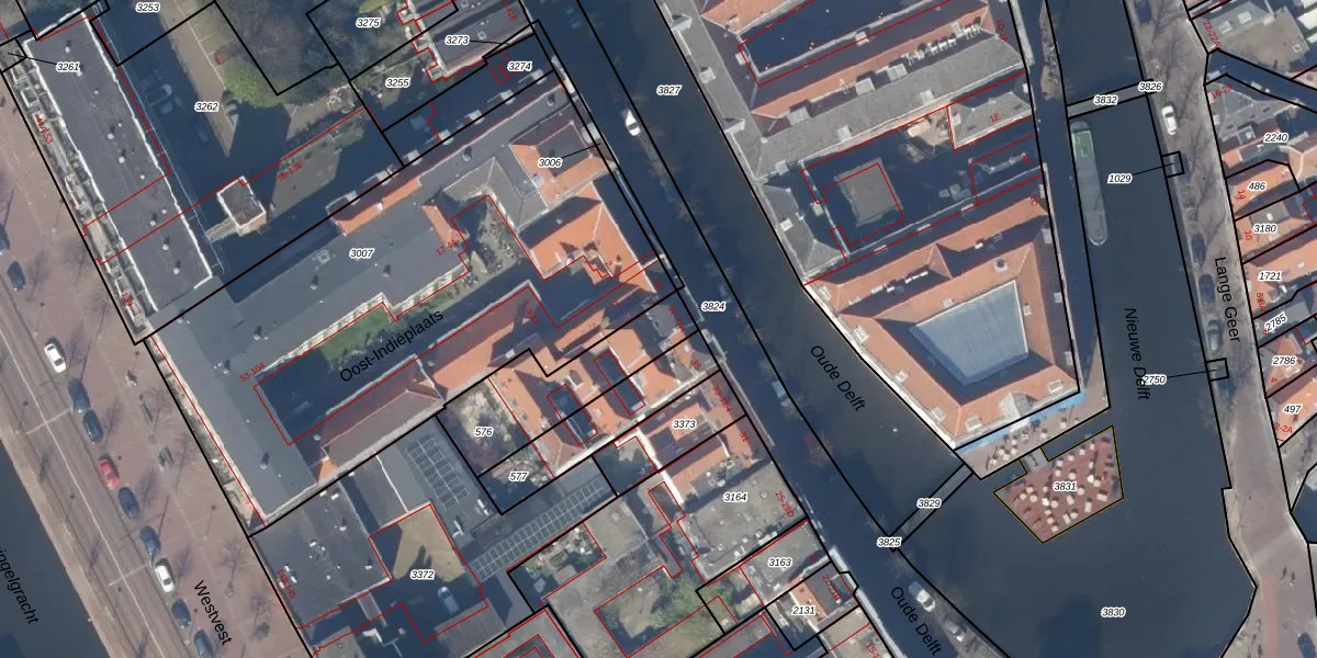 Het perceel waarop Oude Delft 37-A staat heeft een oppervlakte van 361 m². Dit is een groot perceel. De perceeloppervlakte wordt geregistreerd door het Kadaster. Gedetailleerde informatie over de maten van dit perceel kunt u vinden in het rapport Kadastrale kaart met maatvoering van Oude Delft 37-A.