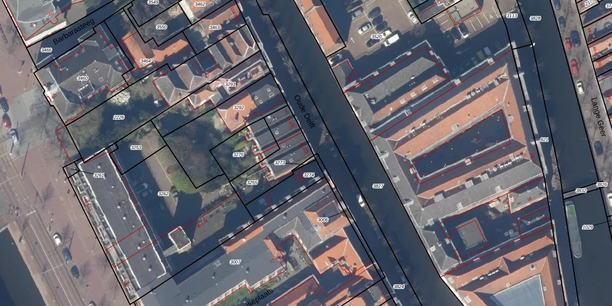Het perceel waarop Oude Delft 41 staat heeft een oppervlakte van 321 m². Dit is een groot perceel. De perceeloppervlakte wordt geregistreerd door het Kadaster. Gedetailleerde informatie over de maten van dit perceel kunt u vinden in het rapport Kadastrale kaart met maatvoering van Oude Delft 41.