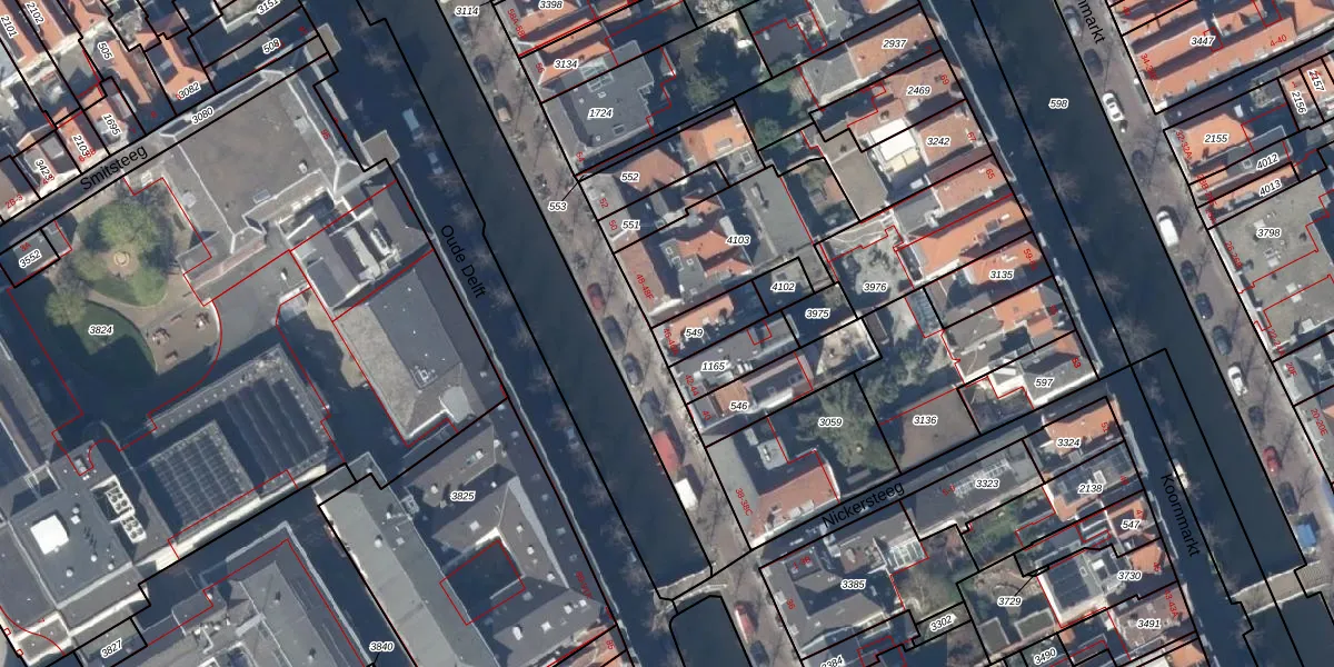 Oude Delft 46 is gelegen op kadastraal perceel DEL00D549. Deze kadastrale aanduiding is uniek en wordt gebruikt door het Kadaster om eigendomsrechten en andere zakelijke rechten vast te leggen. Het perceel maakt onderdeel uit van de kadastrale gemeente Delft.
