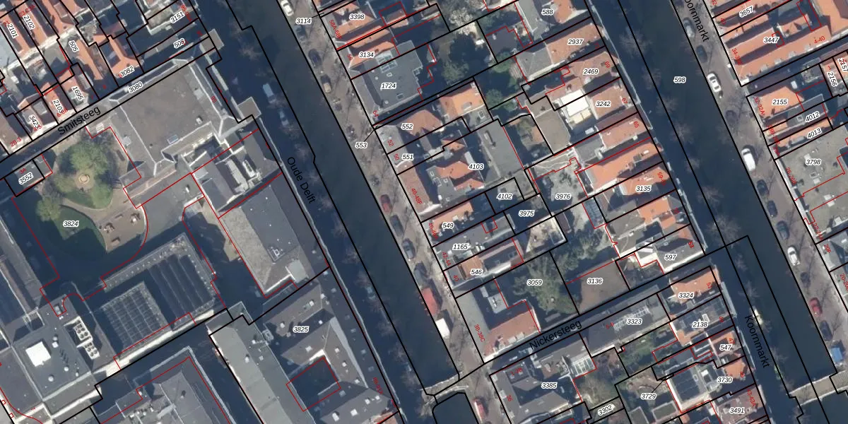 Het perceel waarop Oude Delft 48-B staat heeft een oppervlakte van 453 m². Dit is een groot perceel. De perceeloppervlakte wordt geregistreerd door het Kadaster. Gedetailleerde informatie over de maten van dit perceel kunt u vinden in het rapport Kadastrale kaart met maatvoering van Oude Delft 48-B.