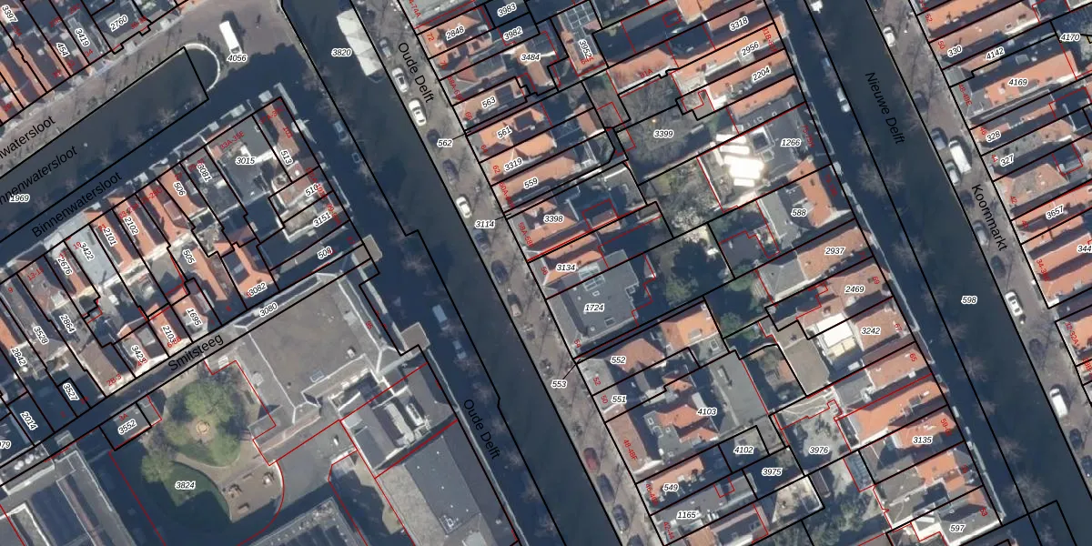 Het perceel waarop Oude Delft 56 staat heeft een oppervlakte van 186 m². Dit is een middelgroot perceel. De perceeloppervlakte wordt geregistreerd door het Kadaster. Gedetailleerde informatie over de maten van dit perceel kunt u vinden in het rapport Kadastrale kaart met maatvoering van Oude Delft 56.