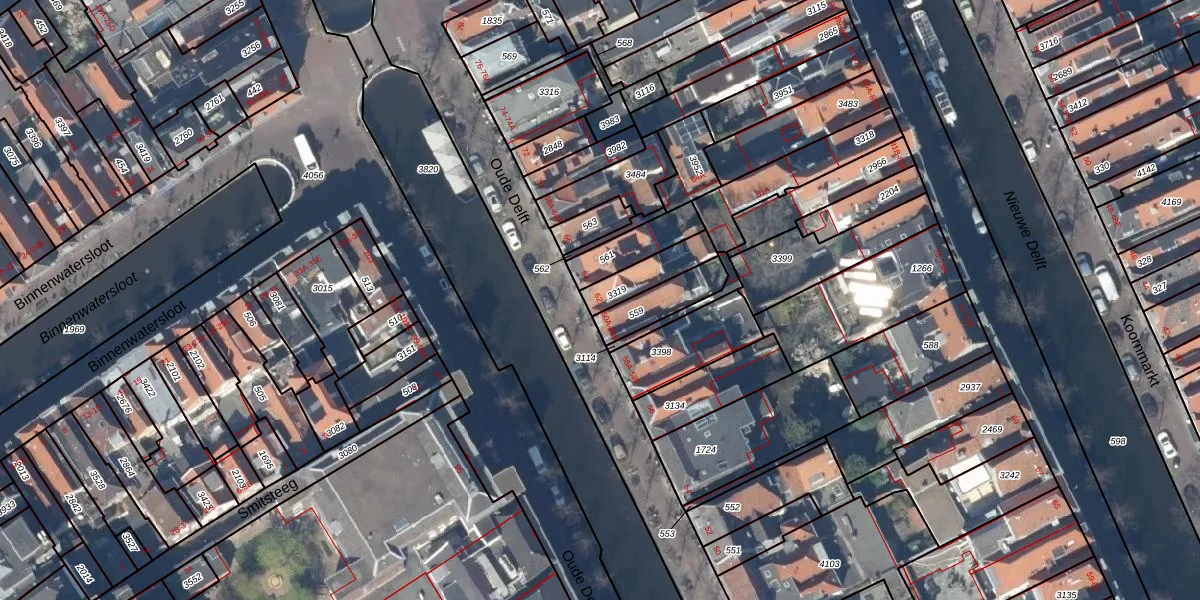 Het perceel waarop Oude Delft 62-E staat heeft een oppervlakte van 107 m². Dit is een middelgroot perceel. De perceeloppervlakte wordt geregistreerd door het Kadaster. Gedetailleerde informatie over de maten van dit perceel kunt u vinden in het rapport Kadastrale kaart met maatvoering van Oude Delft 62-E.