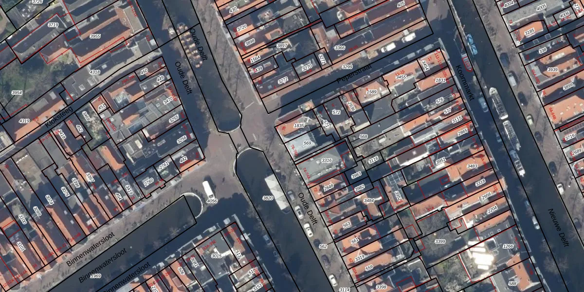Het perceel waarop Oude Delft 76 staat heeft een oppervlakte van 94 m². Dit is een klein perceel. De perceeloppervlakte wordt geregistreerd door het Kadaster. Gedetailleerde informatie over de maten van dit perceel kunt u vinden in het rapport Kadastrale kaart met maatvoering van Oude Delft 76.