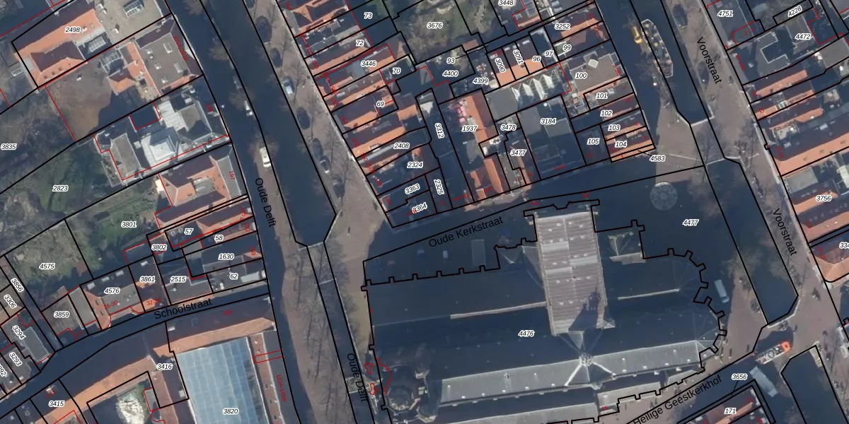 Oude Kerkstraat 2-B is gelegen op kadastraal perceel DEL00C3364. Deze kadastrale aanduiding is uniek en wordt gebruikt door het Kadaster om eigendomsrechten en andere zakelijke rechten vast te leggen. Het perceel maakt onderdeel uit van de kadastrale gemeente Delft.