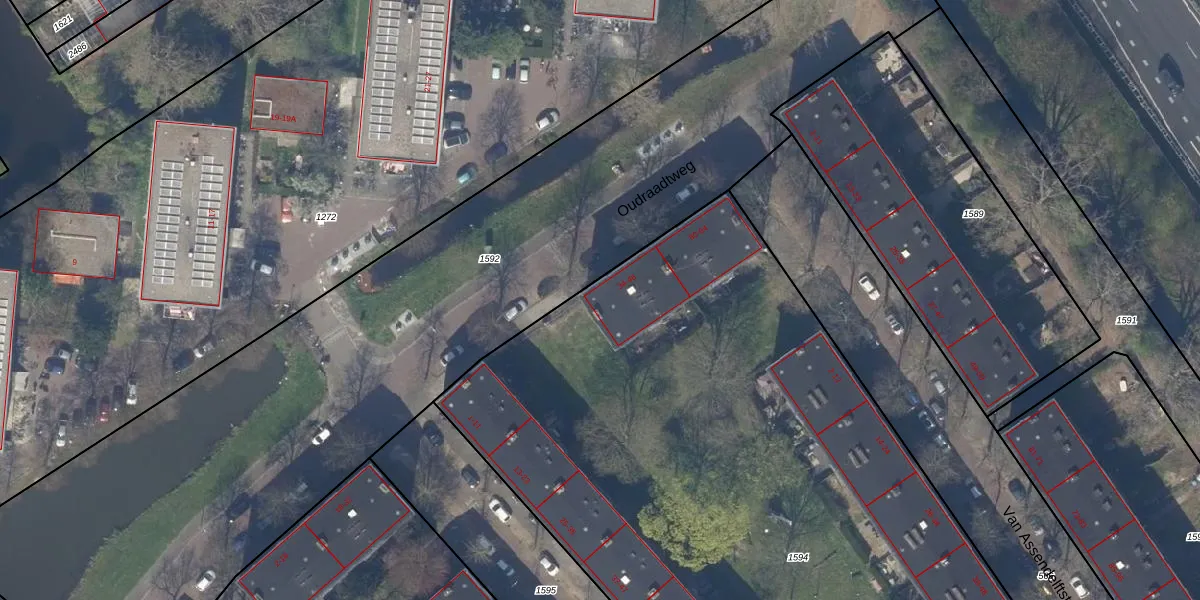 Oudraadtweg 34 is gelegen op kadastraal perceel DEL00P1594. Deze kadastrale aanduiding is uniek en wordt gebruikt door het Kadaster om eigendomsrechten en andere zakelijke rechten vast te leggen. Het perceel maakt onderdeel uit van de kadastrale gemeente Delft.