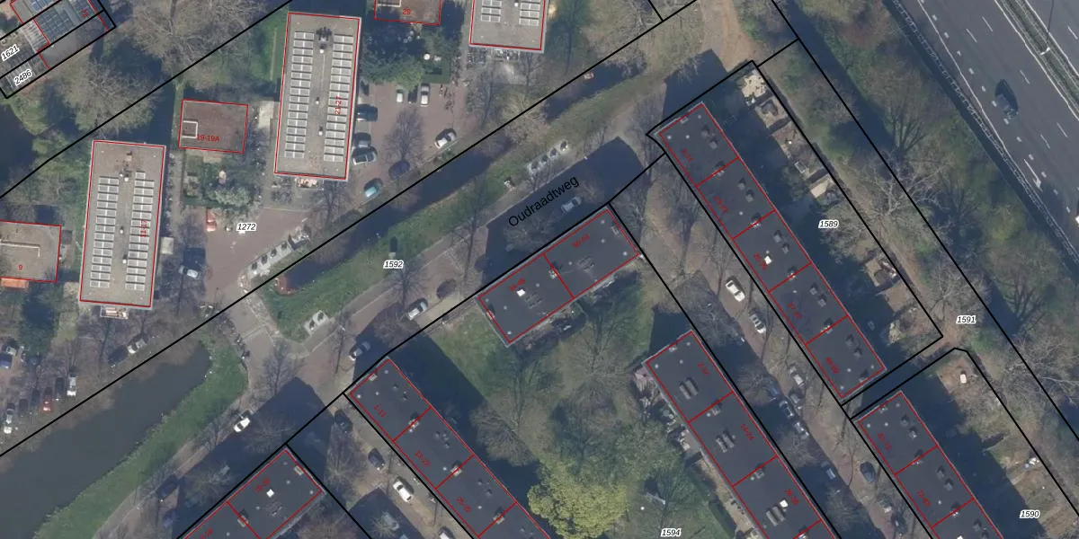 Oudraadtweg 44 is gelegen op kadastraal perceel DEL00P1594. Deze kadastrale aanduiding is uniek en wordt gebruikt door het Kadaster om eigendomsrechten en andere zakelijke rechten vast te leggen. Het perceel maakt onderdeel uit van de kadastrale gemeente Delft.