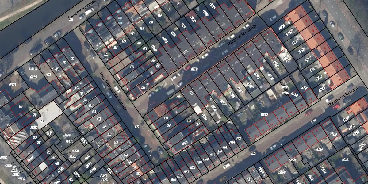 Het perceel waarop Palamedesstraat 1 staat heeft een oppervlakte van 165 m². Dit is een middelgroot perceel. De perceeloppervlakte wordt geregistreerd door het Kadaster. Gedetailleerde informatie over de maten van dit perceel kunt u vinden in het rapport Kadastrale kaart met maatvoering van Palamedesstraat 1.