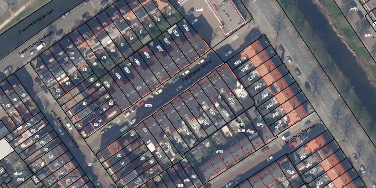 Palamedesstraat 23 is gelegen op kadastraal perceel DEL00P1577. Deze kadastrale aanduiding is uniek en wordt gebruikt door het Kadaster om eigendomsrechten en andere zakelijke rechten vast te leggen. Het perceel maakt onderdeel uit van de kadastrale gemeente Delft.
