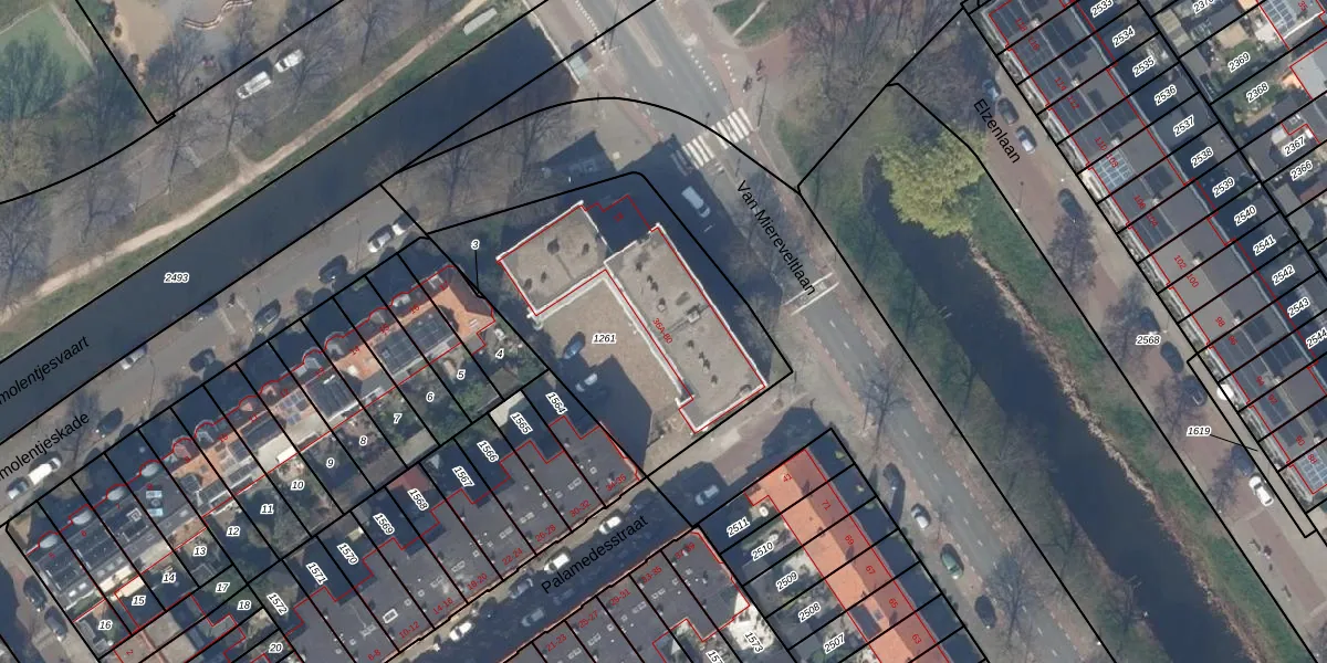 Het perceel waarop Palamedesstraat 36-G staat heeft een oppervlakte van 1275 m². Dit is een zeer groot perceel. De perceeloppervlakte wordt geregistreerd door het Kadaster. Gedetailleerde informatie over de maten van dit perceel kunt u vinden in het rapport Kadastrale kaart met maatvoering van Palamedesstraat 36-G.