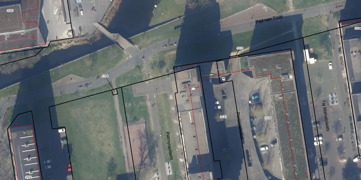 Het perceel waarop Palmyraplaats 162 staat heeft een oppervlakte van 4845 m². Dit is een zeer groot perceel. De perceeloppervlakte wordt geregistreerd door het Kadaster. Gedetailleerde informatie over de maten van dit perceel kunt u vinden in het rapport Kadastrale kaart met maatvoering van Palmyraplaats 162.