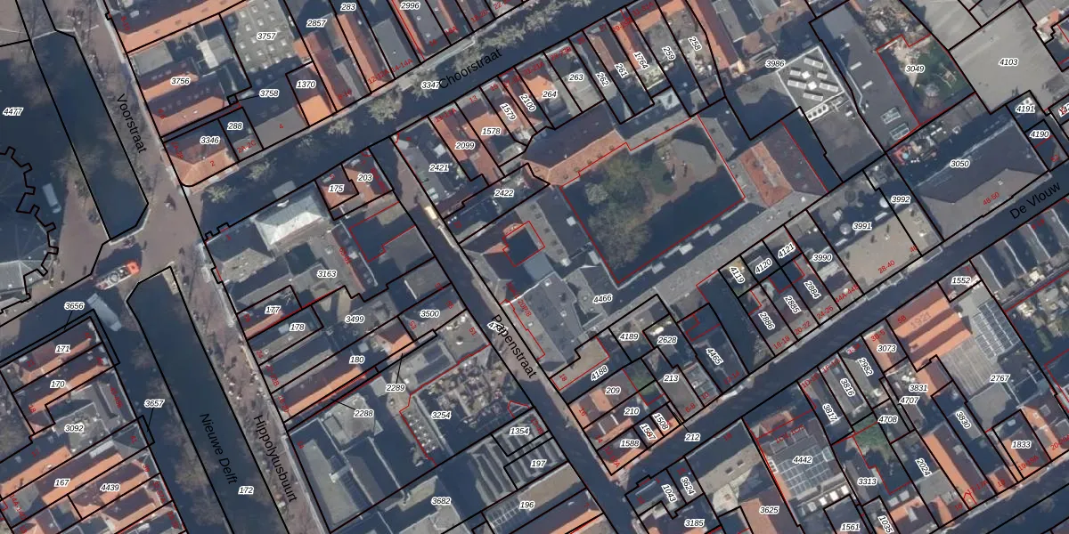 Het perceel waarop het adres ligt is DEL00-C-4466. De afkorting 'DEL00' staat voor kadastrale gemeente Delft. Het perceel is met 2083 m² relatief groot. Het gemiddelde ligt in de kadastrale gemeente Delft op 924,62 m². Het kleinste perceel in de kadastrale gemeente is 0 m² groot. De grootste perceeloppervlakte is 64,1 ha. Op het perceel zijn 66 adressen aanwezig. In de Basisregistratie Kadaster (BRK) werden de grenzen van het perceel geregistreerd op 09-12-2009.