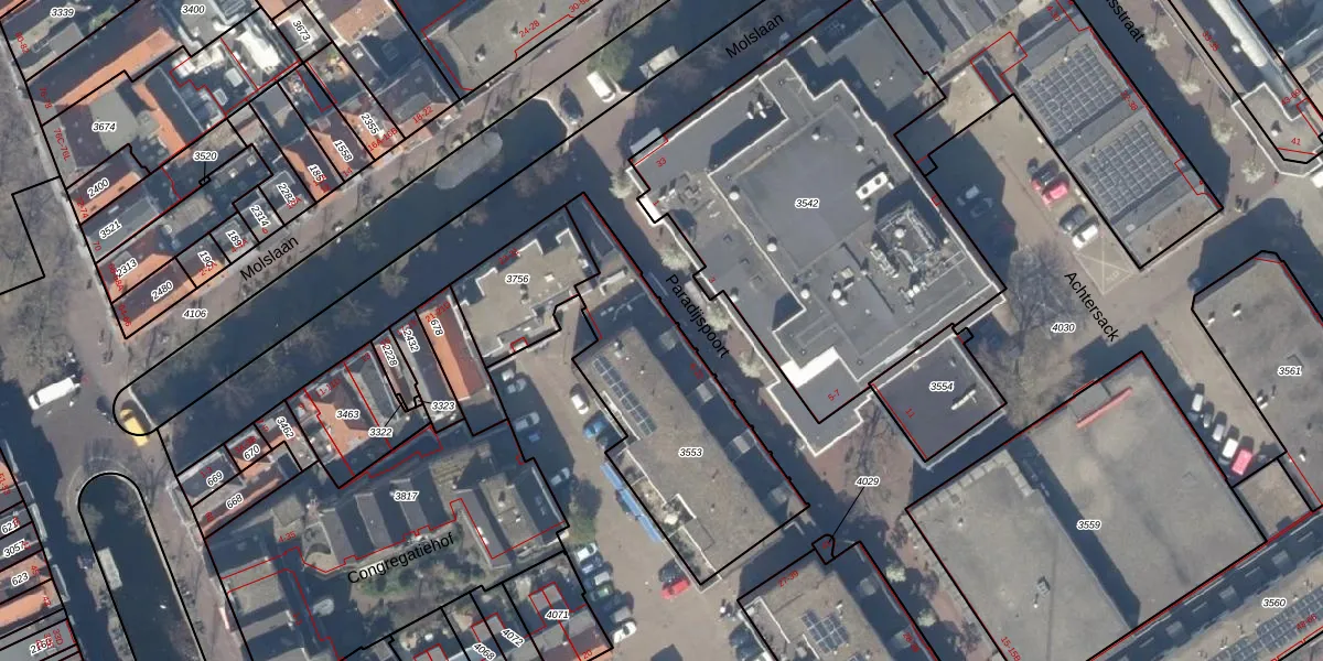 Het perceel waarop Paradijspoort 10 staat heeft een oppervlakte van 858 m². Dit is een groot perceel. De perceeloppervlakte wordt geregistreerd door het Kadaster. Gedetailleerde informatie over de maten van dit perceel kunt u vinden in het rapport Kadastrale kaart met maatvoering van Paradijspoort 10.