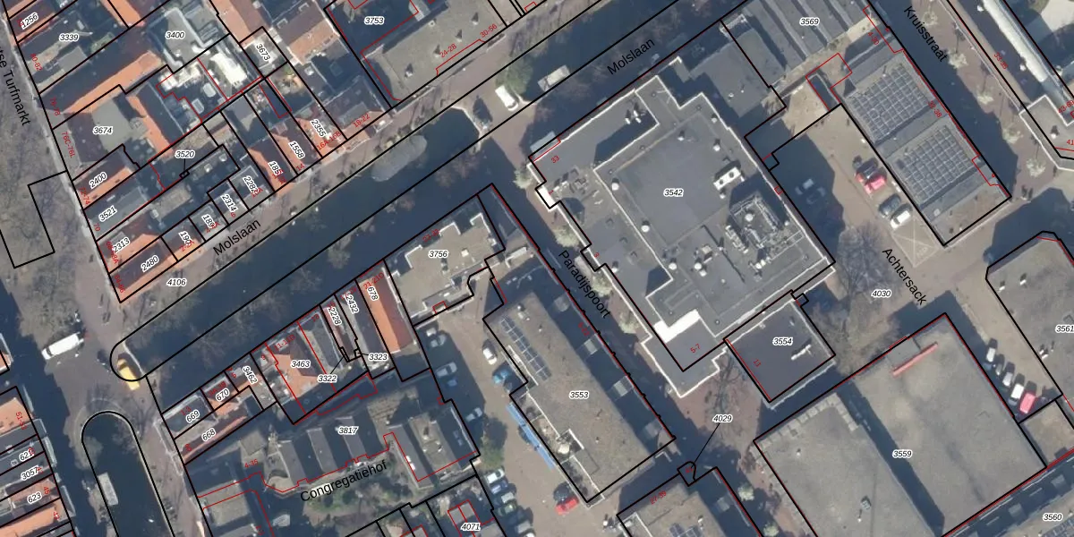 Het perceel waarop Paradijspoort 8 staat heeft een oppervlakte van 858 m². Dit is een groot perceel. De perceeloppervlakte wordt geregistreerd door het Kadaster. Gedetailleerde informatie over de maten van dit perceel kunt u vinden in het rapport Kadastrale kaart met maatvoering van Paradijspoort 8.