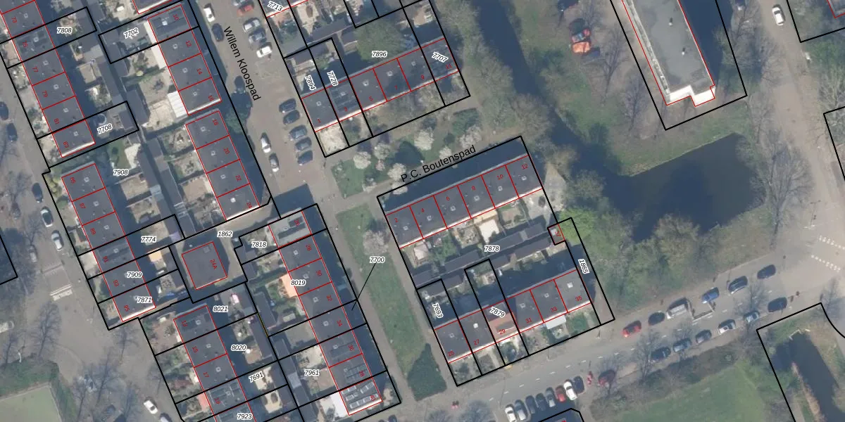 Het perceel waarop P.C. Boutenspad 4 staat heeft een oppervlakte van 1475 m². Dit is een zeer groot perceel. De perceeloppervlakte wordt geregistreerd door het Kadaster. Gedetailleerde informatie over de maten van dit perceel kunt u vinden in het rapport Kadastrale kaart met maatvoering van P.C. Boutenspad 4.