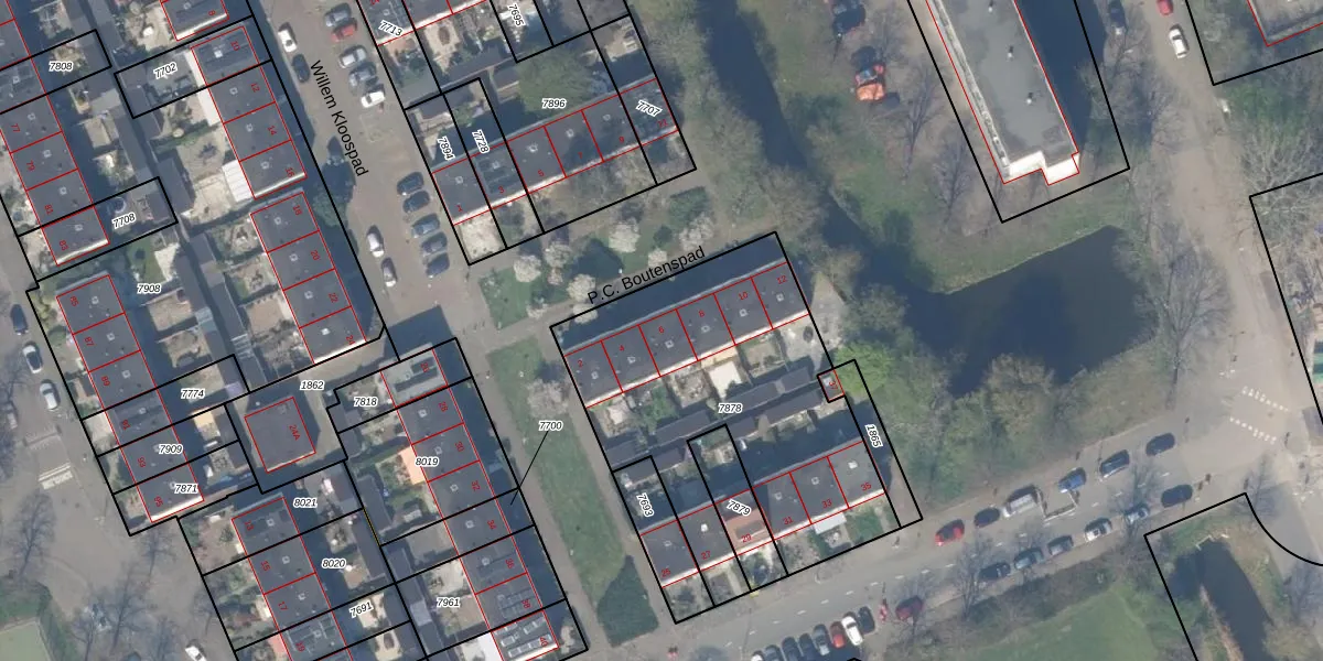 Het perceel waarop P.C. Boutenspad 6 staat heeft een oppervlakte van 1475 m². Dit is een zeer groot perceel. De perceeloppervlakte wordt geregistreerd door het Kadaster. Gedetailleerde informatie over de maten van dit perceel kunt u vinden in het rapport Kadastrale kaart met maatvoering van P.C. Boutenspad 6.