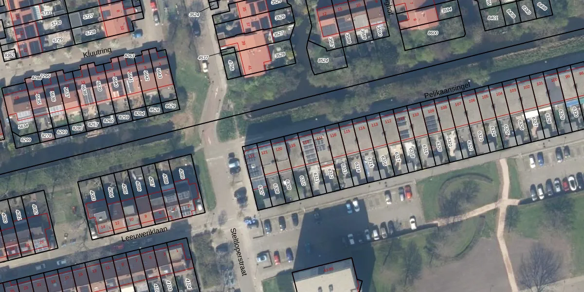 Het perceel waarop Pelikaansingel 119 staat heeft een oppervlakte van 108 m². Dit is een middelgroot perceel. De perceeloppervlakte wordt geregistreerd door het Kadaster. Gedetailleerde informatie over de maten van dit perceel kunt u vinden in het rapport Kadastrale kaart met maatvoering van Pelikaansingel 119.