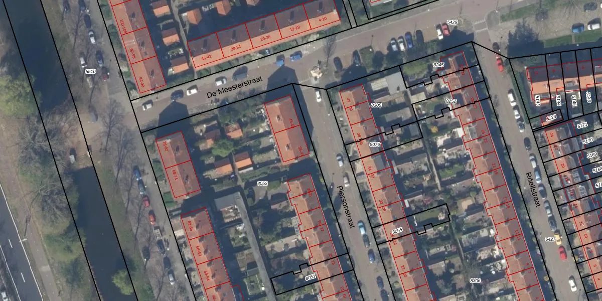 Het perceel waarop Piersonstraat 35 staat heeft een oppervlakte van 6563 m². Dit is een zeer groot perceel. De perceeloppervlakte wordt geregistreerd door het Kadaster. Gedetailleerde informatie over de maten van dit perceel kunt u vinden in het rapport Kadastrale kaart met maatvoering van Piersonstraat 35.