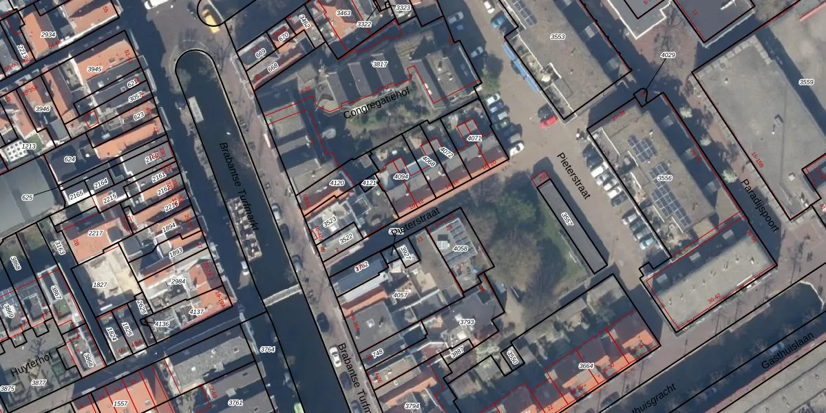 Het perceel waarop Pieterstraat 10 staat heeft een oppervlakte van 179 m². Dit is een middelgroot perceel. De perceeloppervlakte wordt geregistreerd door het Kadaster. Gedetailleerde informatie over de maten van dit perceel kunt u vinden in het rapport Kadastrale kaart met maatvoering van Pieterstraat 10.