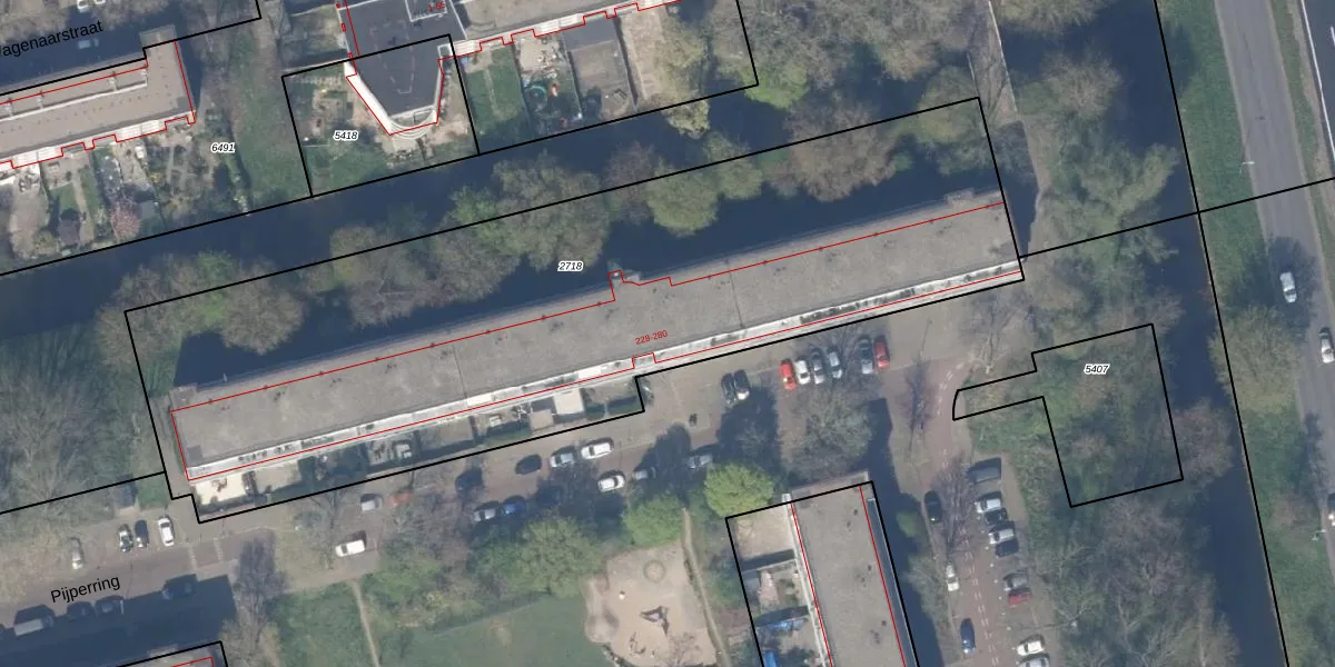 Het perceel waarop Pijperring 241 staat heeft een oppervlakte van 4080 m². Dit is een zeer groot perceel. De perceeloppervlakte wordt geregistreerd door het Kadaster. Gedetailleerde informatie over de maten van dit perceel kunt u vinden in het rapport Kadastrale kaart met maatvoering van Pijperring 241.