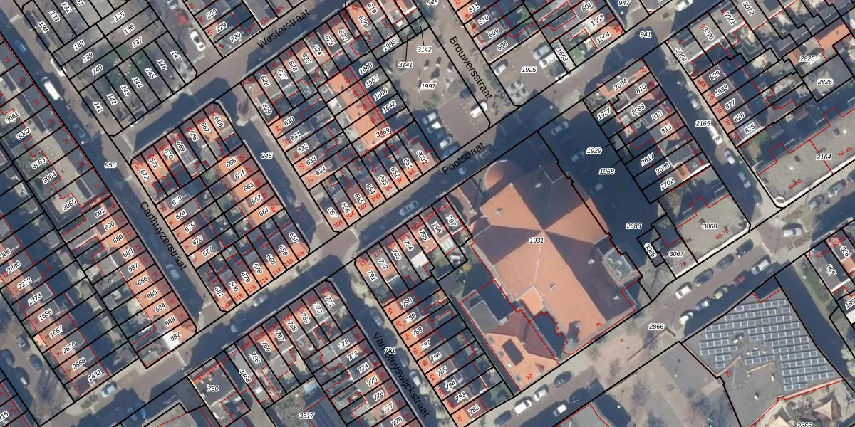 Het perceel waarop Pootstraat 109-B staat heeft een oppervlakte van 57 m². Dit is een klein perceel. De perceeloppervlakte wordt geregistreerd door het Kadaster. Gedetailleerde informatie over de maten van dit perceel kunt u vinden in het rapport Kadastrale kaart met maatvoering van Pootstraat 109-B.