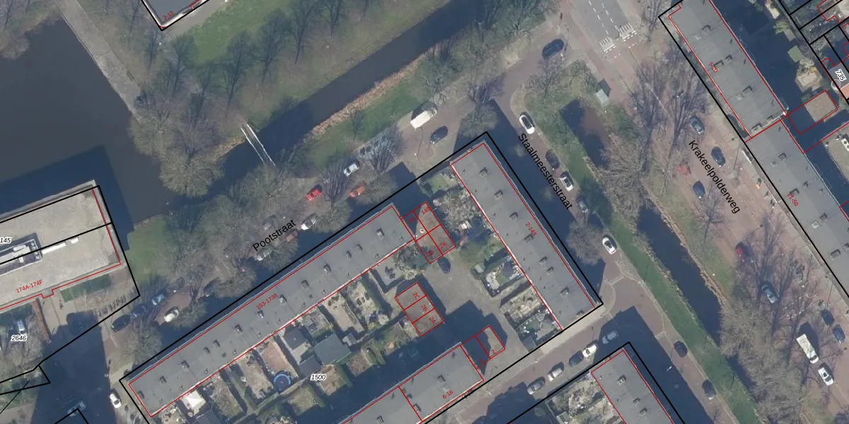 Het perceel waarop Pootstraat 149 staat heeft een oppervlakte van 5053 m². Dit is een zeer groot perceel. De perceeloppervlakte wordt geregistreerd door het Kadaster. Gedetailleerde informatie over de maten van dit perceel kunt u vinden in het rapport Kadastrale kaart met maatvoering van Pootstraat 149.
