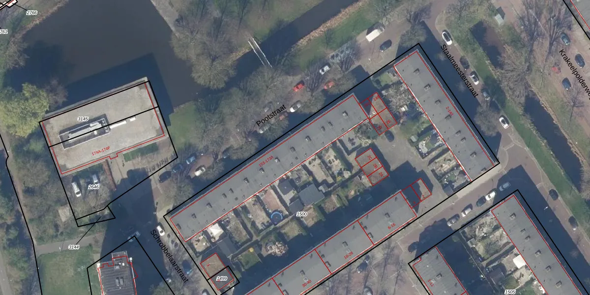 Het perceel waarop Pootstraat 159-I staat heeft een oppervlakte van 5053 m². Dit is een zeer groot perceel. De perceeloppervlakte wordt geregistreerd door het Kadaster. Gedetailleerde informatie over de maten van dit perceel kunt u vinden in het rapport Kadastrale kaart met maatvoering van Pootstraat 159-I.